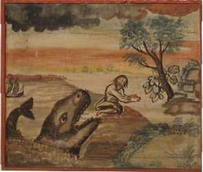Sie nahmen Jona und warfen ihn ins Meer da stand das Meer still, von seinen wüten. Aber der Herr verschaffte einen großen Fisch, Jona zu verschlingen und Jona war im Leibe des Fisches drei Tage und drei Nächte. (Psalm 150 3,4,5,6)