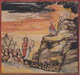 Mose empfängt die Gesetzestafeln auf dem Sinai.