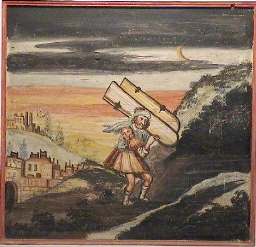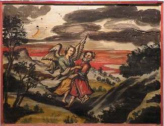 Und Jacob zog aus von Bersaba und kam an einem Ort, da blieb er über Nacht, denn die Sonne war untergegangen. Und er nahm einen Stein des Orts, und legte ihn zu seinen Haupte, undlegte sich an den selbigen Ort schlafen. Und ihm träumte, und siehe, eine Leiter stand auf Erden, die reichte mit der Spitze an den Himmel, und siehe die Engel Gottes fliegen dran auf und nieder, und der Herr stünd oben drauf. etc. (1. Mose 28, 10-13).