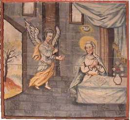 Der Engel kam zu Maria hinein und sprach: Gegrüsset seist du holdselige, der Herr sei mit dir, du gebenedeite unter den Weibern. Siehe du wirst schwanger werden im Leibe, und einen Sohn gebären, des Namen sollst du Jesus heissen .Der wird groß und ein Sohn des Höchsten genannt werden, und Gott der Herr wird ihm den Stuhl seines Vaters Davids geben.Jesu. (Lukas 1,28.31-33).