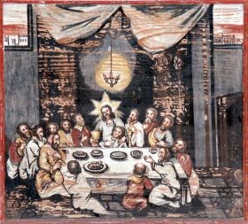 Da sie aber aßen, nahm Jesus das Brot, dankete und brachs, und gabs den Jüngern, und sprach: Nehmet esset; Das ist mein Leib. Und er nahm den Kelch, und dankete, gab ihnen den, und sprach: Trinket alle daraus; Das ist mein Blut des neuen Testaments, welches vergossen wird für viele, zur Vergebung der Sünden. (Matthäus 26,26-28)